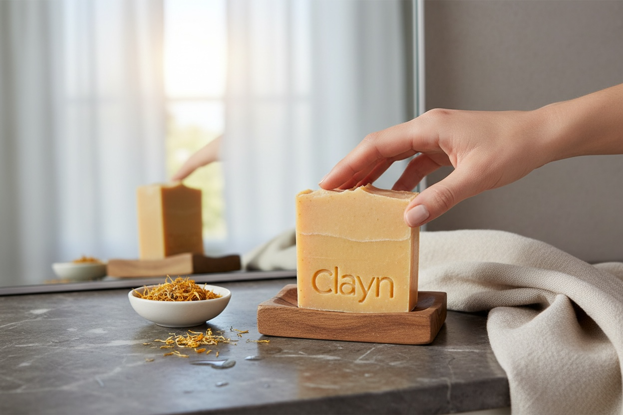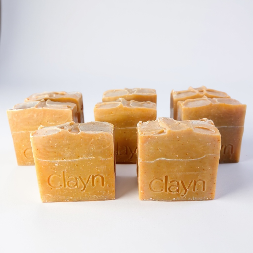 Turmeric gives the bar its golden color and is known for its skin-balancing properties. Used gently, it adds warmth and character without staining the skin.